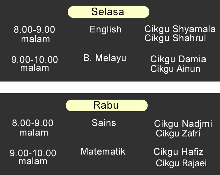 Bukan tutor biasa. Tenaga pengajar terdiri daripada Guru Sekolah , Ketua Panitia , Guru Pakar Subjek , Pensyarah Universiti